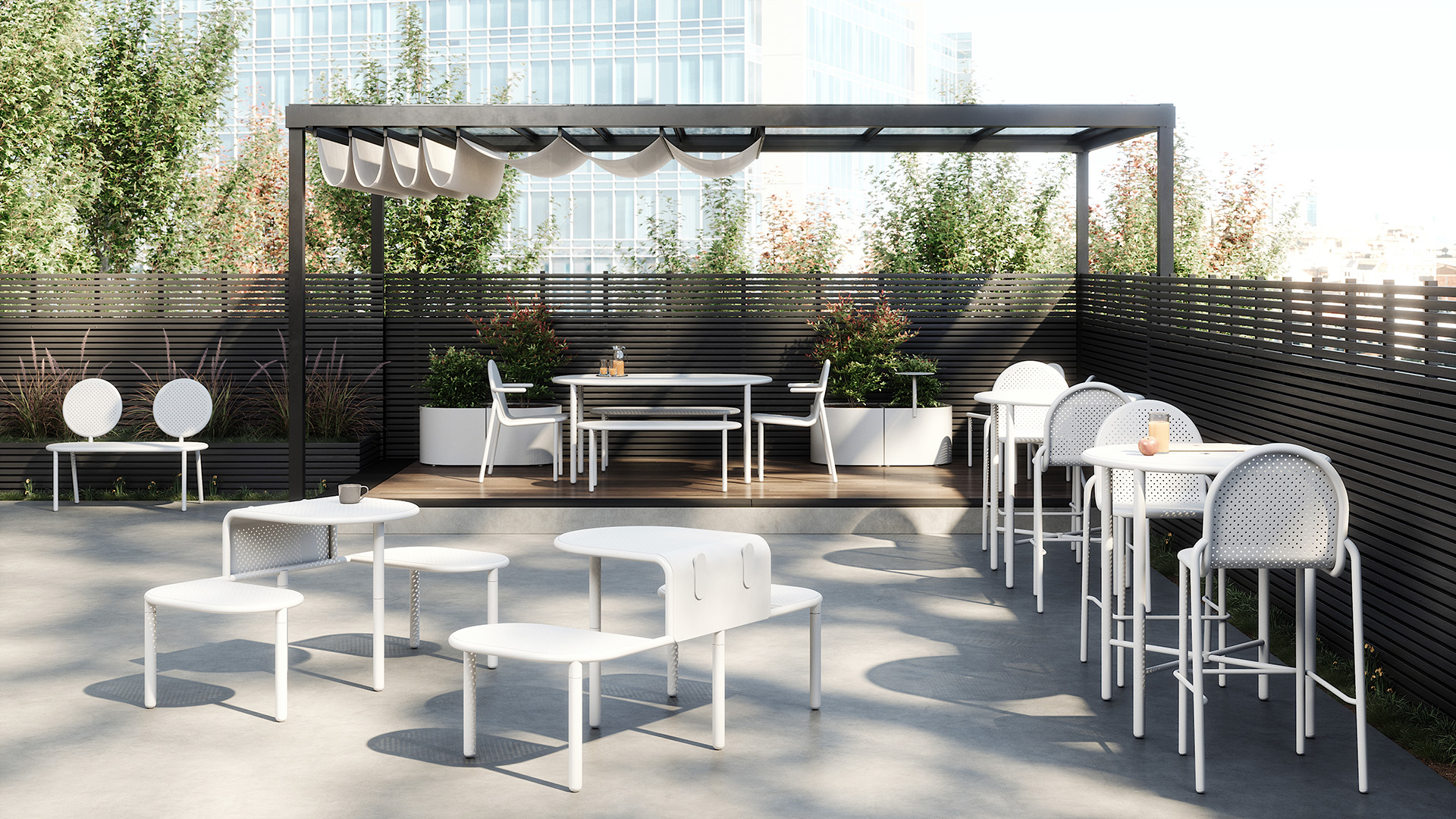 The Juna collection is a modern and fun take on outdoor furniture to get you outside in the fresh air, whether for work or leisure. Designed to be relaxed and easygoing, Juna’s aesthetic is based on soft, rounded shapes to give the collection a playful minimal look.