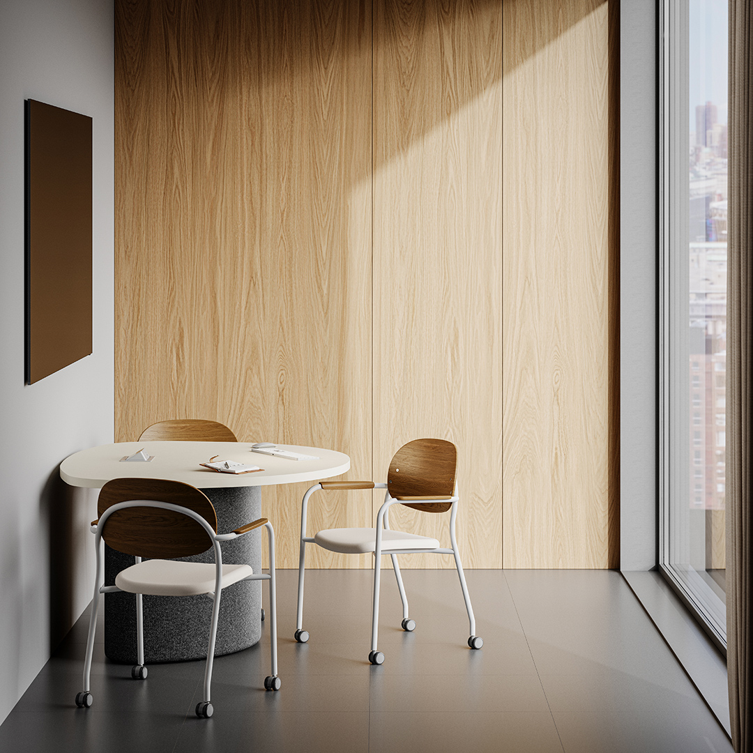 A thoughtful collection of multipurpose stackable seating, the Tioga can be used harmoniously throughout multiple spaces. Mix and match wood laminate and upholstery, plus recycled PET felt for guest chairs, until you find your perfect pairing.