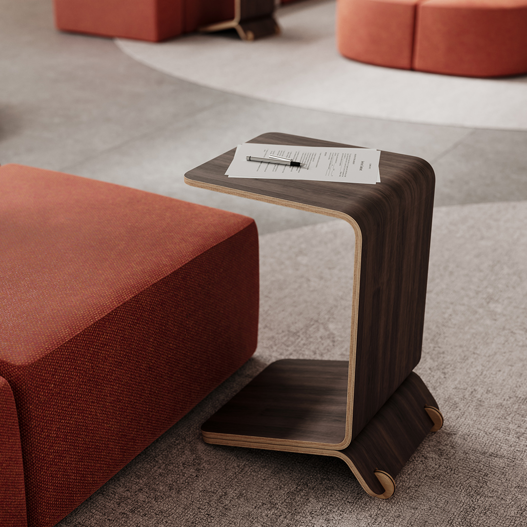 Willow is a pull up table with a classic bent plywood design that will stand the test of time. Deceptively simple, Willow seamlessly integrates subtle details to add functionality. The angled base elevates your feet in an ergonomic position while the undersurface groove and wheels aid in pulling the table closer. Perfect for working on your laptop or tablet, Willow can be your worksurface when working at sofas, benches, and chairs.